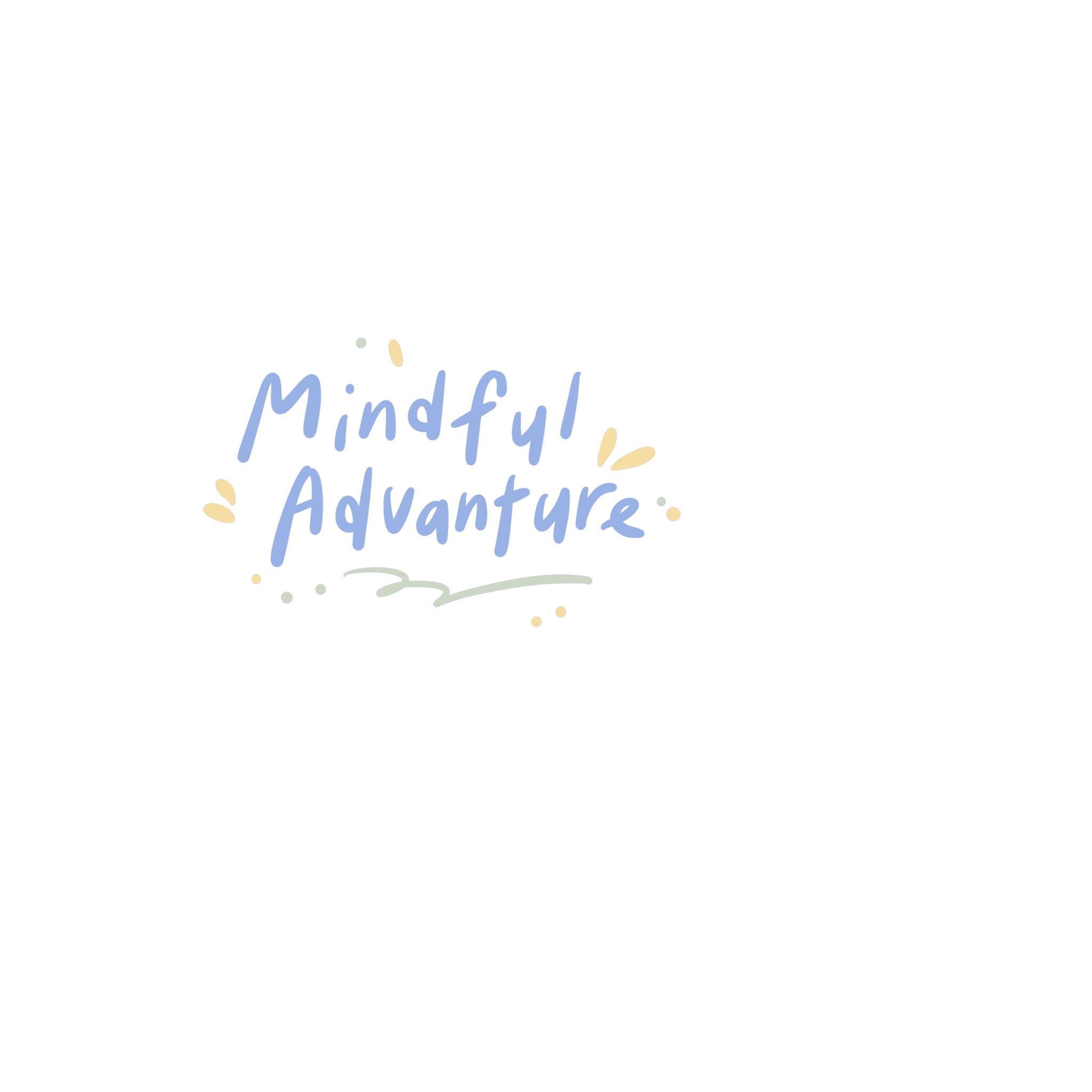 The gentle blue brings calm focus, the soft yellow adds joy and lighthearted energy, and the sage green grounds the experience in nature — together creating a soothing yet uplifting palette that perfectly reflects the spirit of the Mindful Adventure app.
